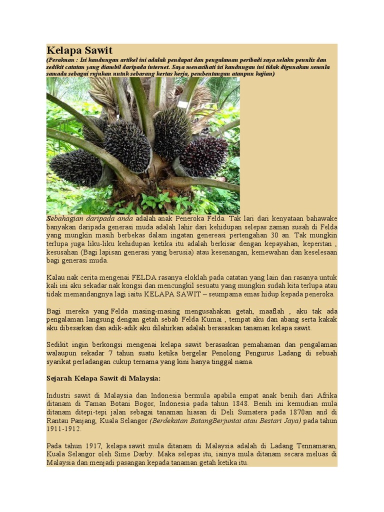 Sejarah Pokok Kelapa Sawit Nursery Kelapa Sawit Bera Facebook